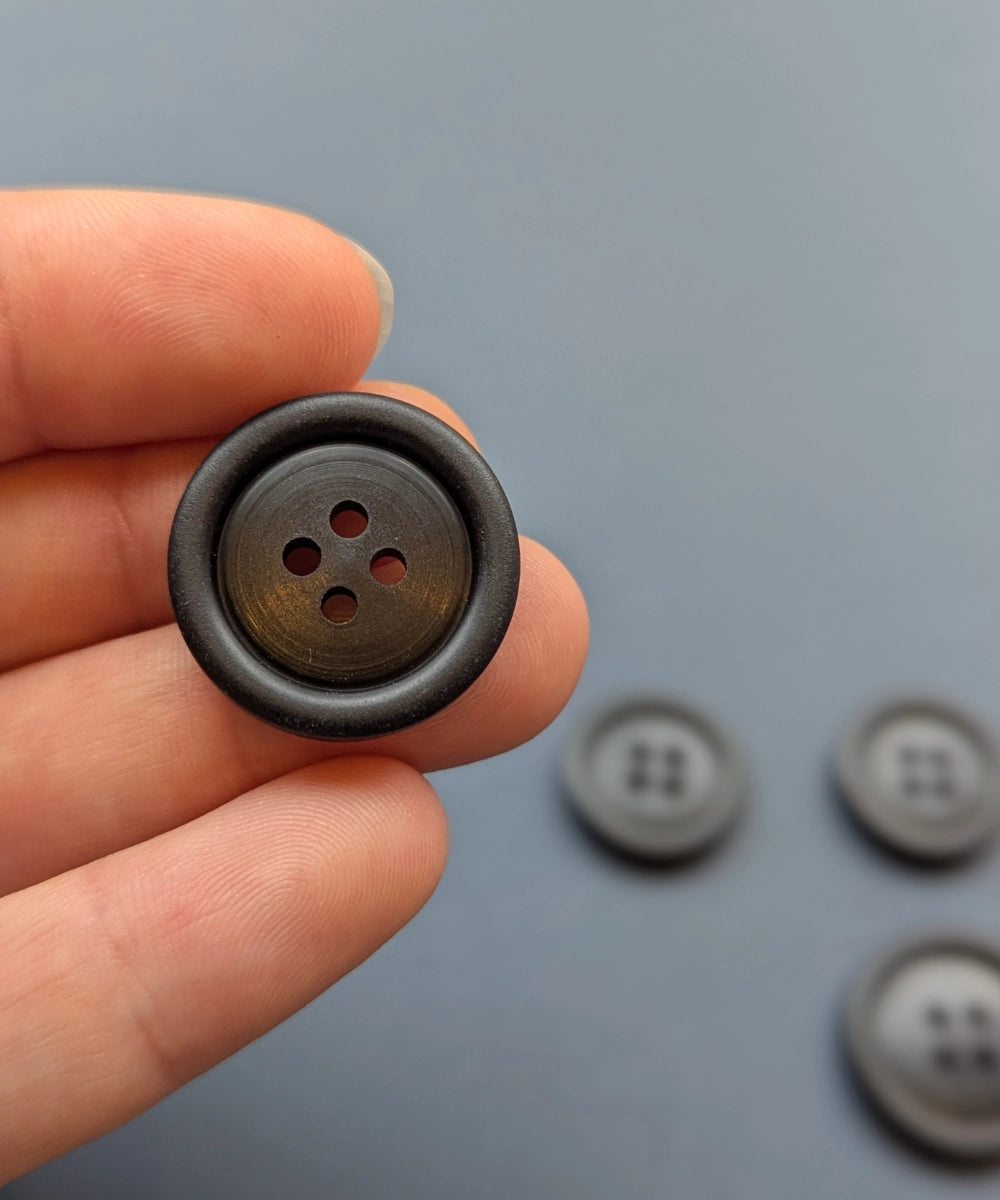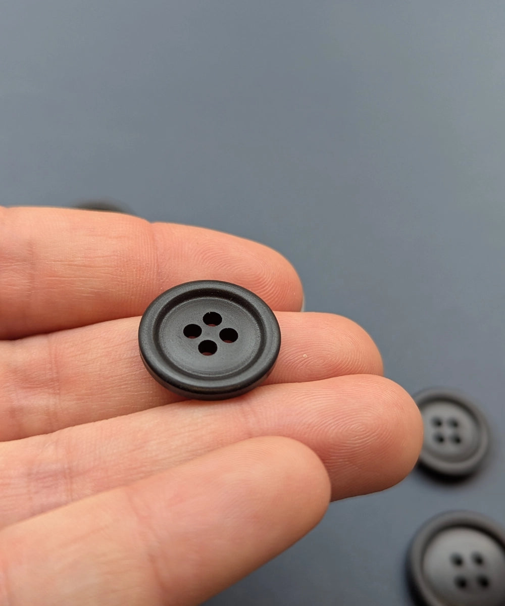 Knopf in schwarz mit 4 Löchern, aus Galalith ⌀ 18 mm, 23 mm