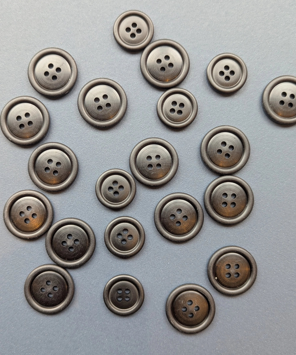 - Da Galalith ein Naturprodukt ist, kann die tatsächliche Größe der Knöpfe leicht variieren und einzelne Knöpfe können ca 1 mm kleiner sein als angegebenen