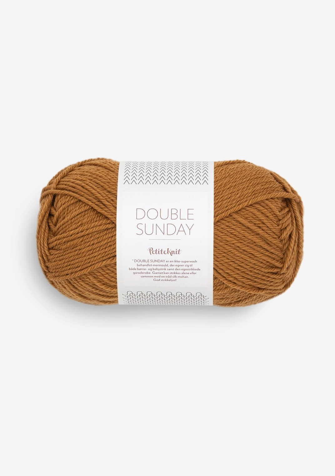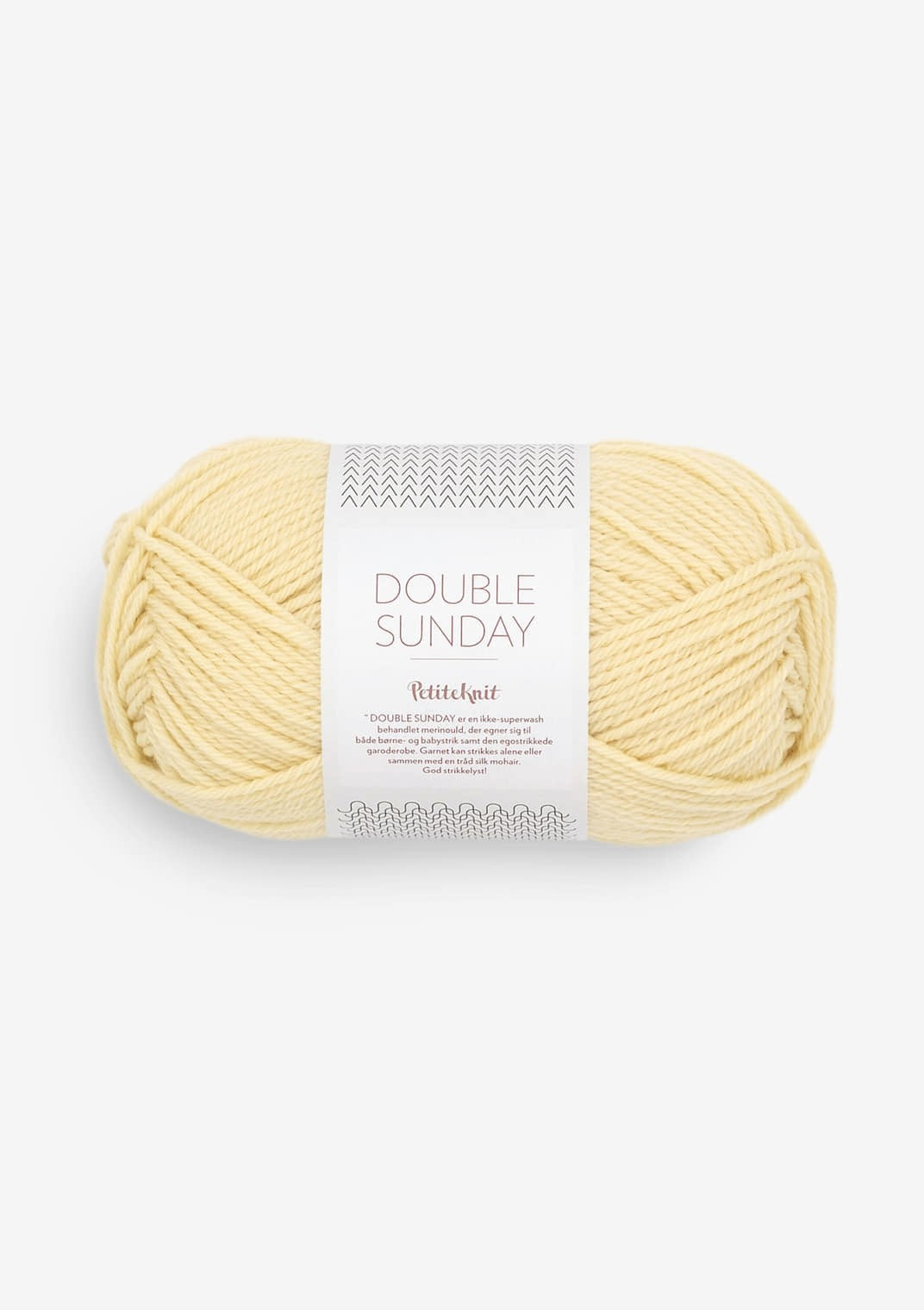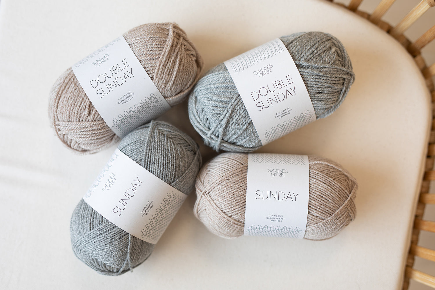 Klasse Farben, non-superwash, mulesing frei: alles wie bei Sunday, nur doppelt so dick. Double Sunday eignet sich wegen der kürzeren Lauflänge und kleineren Maschenprobe damit besonders für Modelle für Erwachsene. Einzeln verstrickt wird mit der Double Sunday zum Beispiel der Marseille Sweater, zusammen mit einem Beilaufgarn könnt ihr den Champagne Cardigan stricken (beides von PetiteKnit).