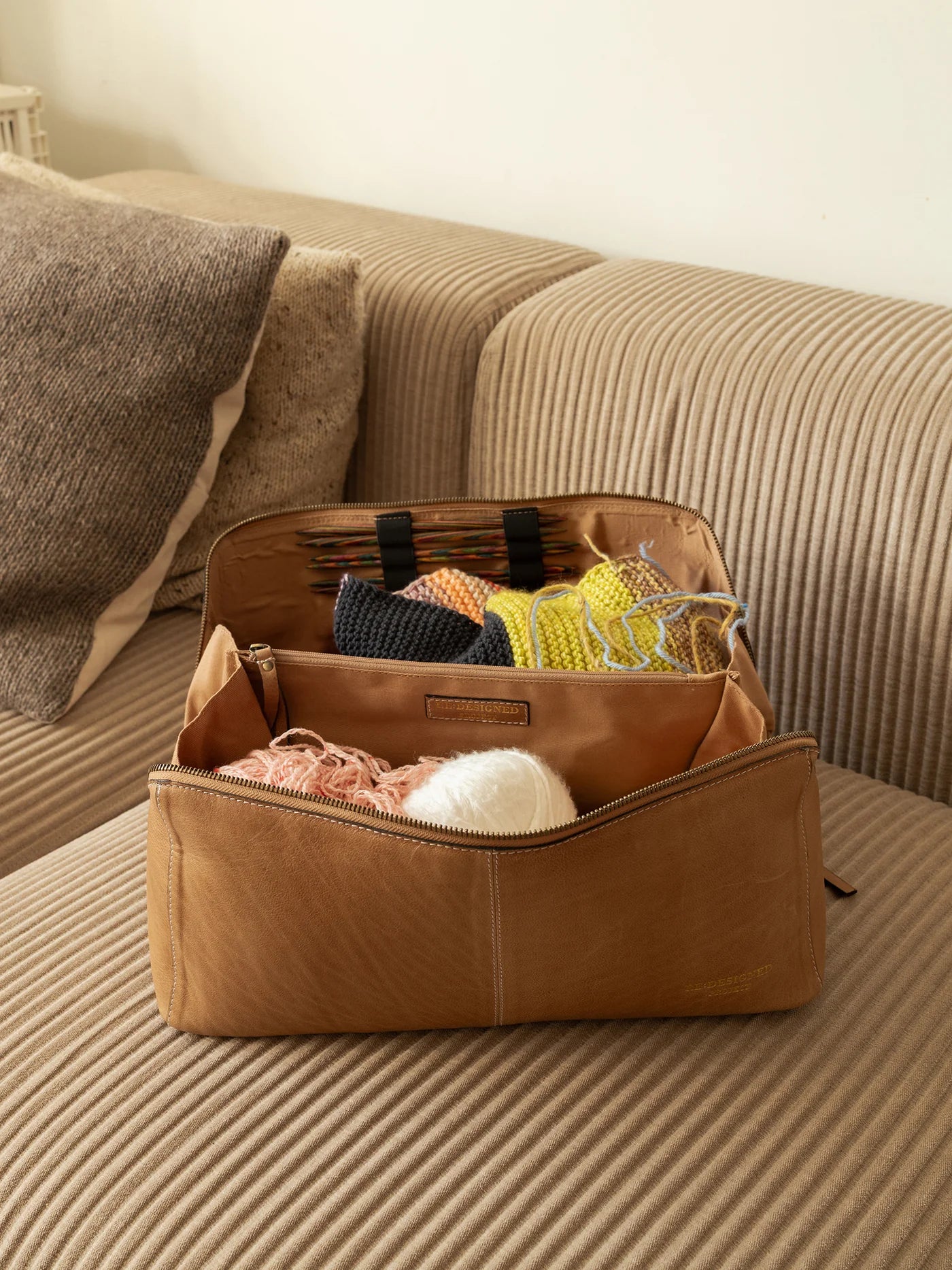 Mit viel Liebe zum Detail gefertigt, hebt diese elegante und vielseitige Tasche dein Strickerlebnis auf ein neues Niveau.