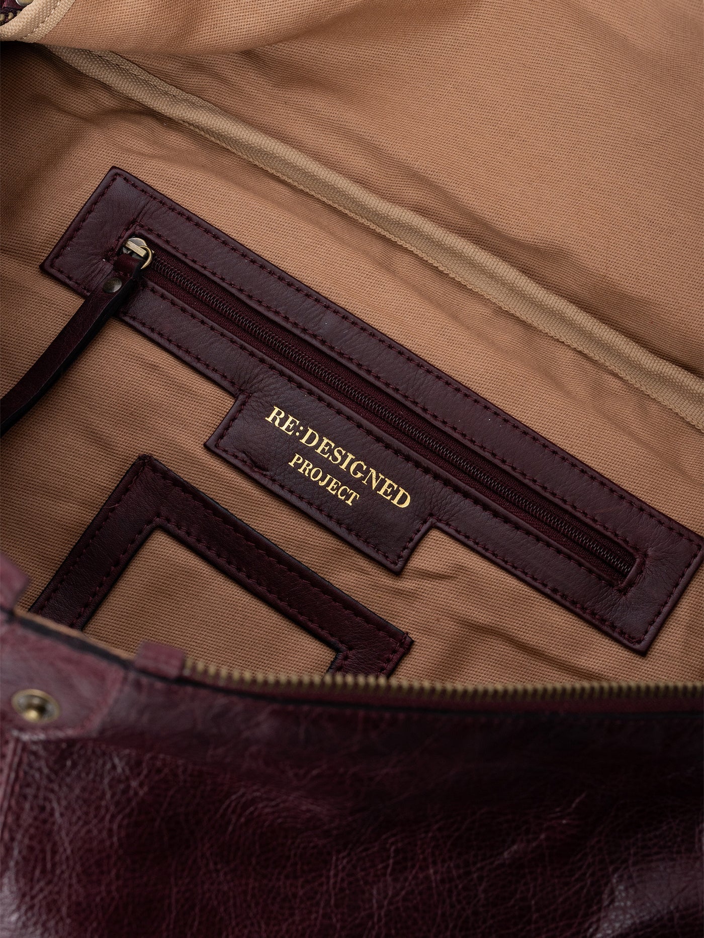 Hergestellt aus der Urban-Leather Qualität von Redesigned – einem genarbten Rindsleder, bei dem jede Tasche vollständig durchgefärbt wird, bevor die Oberfläche final bearbeitet wird. Dadurch bleibt die natürliche Struktur des Leders erhalten. Nach dem Färben wird eine leichte Wachsschicht aufgetragen, die dem Leder eine glatte und weiche Oberfläche mit einzigartigem Charakter verleiht.