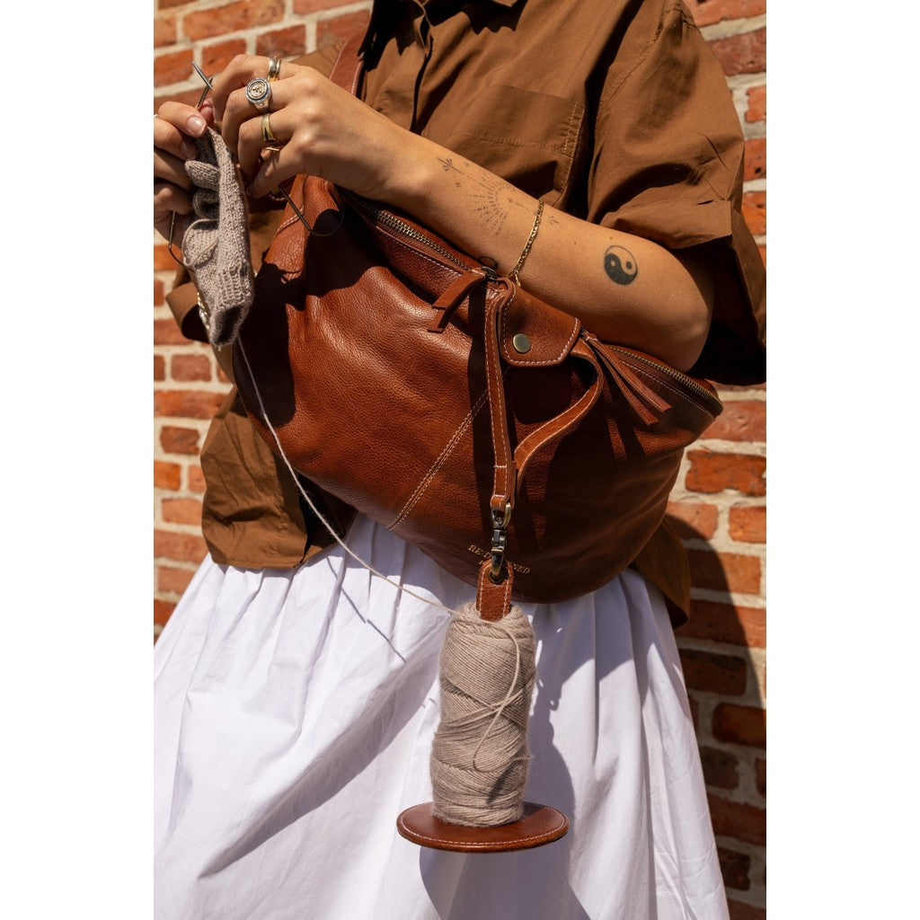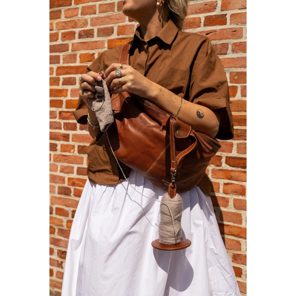 Projekt 96 ist eine große Gürteltasche mit zwei Reißverschlüssen und einem Druckknopfverschluss. Der verstellbare Riemen sorgt für Komfort, während der Schlüsselring ein Maßband stets griffbereit hält. Perfekt, um dein Strickzeug stilvoll und praktisch unterwegs zu transportieren – ein unverzichtbarer Begleiter für jede Strickliebhaberin und jeden Strickliebhaber.