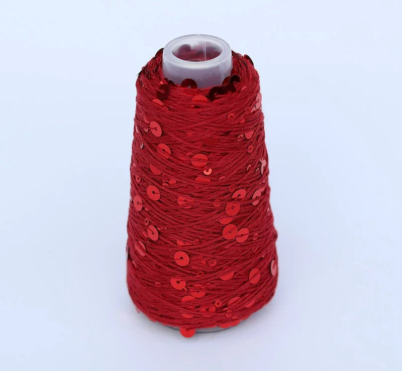Festliches und auffälliges Paillettengarn von Sysleriget! Der Trägerfaden ist aus 100% Baumwolle und somit wie ich gerne sage: "schwitzi freundlich". Die Pailetten sind allerdings natürlich aus Polyamid. Es eignet sich besonders gut zum Verstricken zusammen mit einem anderen „flauschigen“ Garn, wie zum Beispiel ein oder mehreren Fäden Silk Mohair, Brushed Deluxe oder ähnlichem.