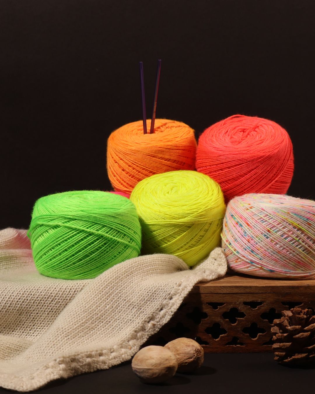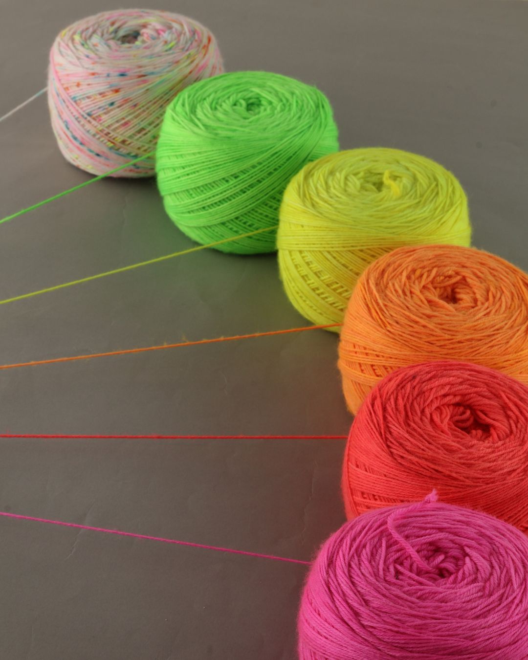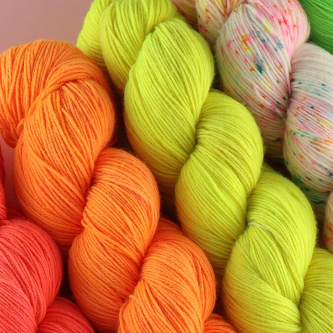 Symfonie Yarns ist eine recht neue Marke und gehört zu Knitpro. Das unifarbene Sockengarn ist handgefärbt und besticht durch kräftigen Farben - eigentlich in eher gedeckten, dunkleren Tönen, aber als Ausnahme gibt es auch diese Neon-Klassiker! Das Sockengarn ist zudem aus Merino und wirklich wunderbar soft und on top noch Öko-Tex zertifiziert!